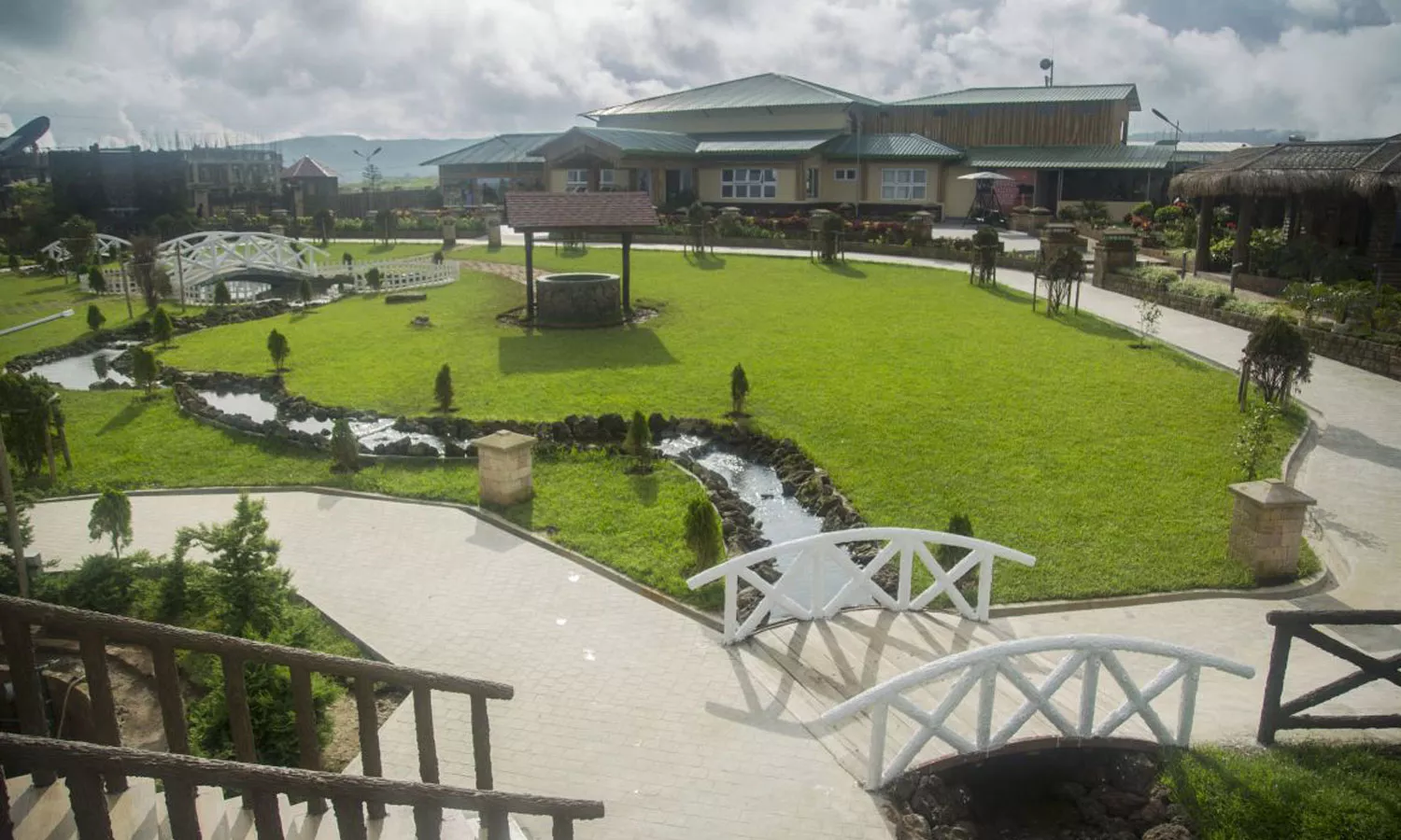 The waterfalls, the little bridges and canopies, the landscaping and the fresh green decorative pines carefully laid out in pots are a visual delight.